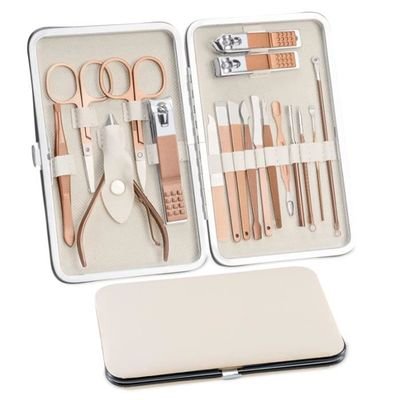 Le kit de manucure et pédicure 18 en 1 contient des outils en acier inoxydable durables et tranchants pour un soin des ongles propre et professionnel. Léger et portable.