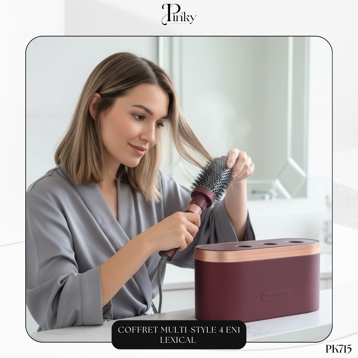 Transformez votre routine capillaire en une expérience de salon de coiffure avec le Coffret Lexical 4-en-1. Conçu pour s’adapter à tous les types de cheveux, cet ensemble polyvalent combine technologie de pointe et design élégant pour vous offrir une liberté de style totale sans abîmer votre fibre capillaire.