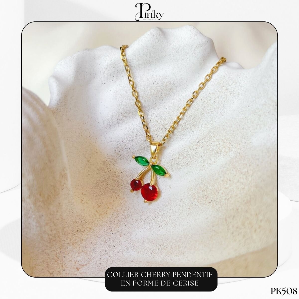 Le pendentif cerise est un symbole de fraîcheur, de gourmandise et de féminité. Ce collier ne se contente pas d’être un simple accessoire : il exprime un état d’esprit pétillant et une personnalité joyeuse. Il complète aussi bien une tenue estivale légère qu’un look élégant, en apportant une touche colorée et originale.
