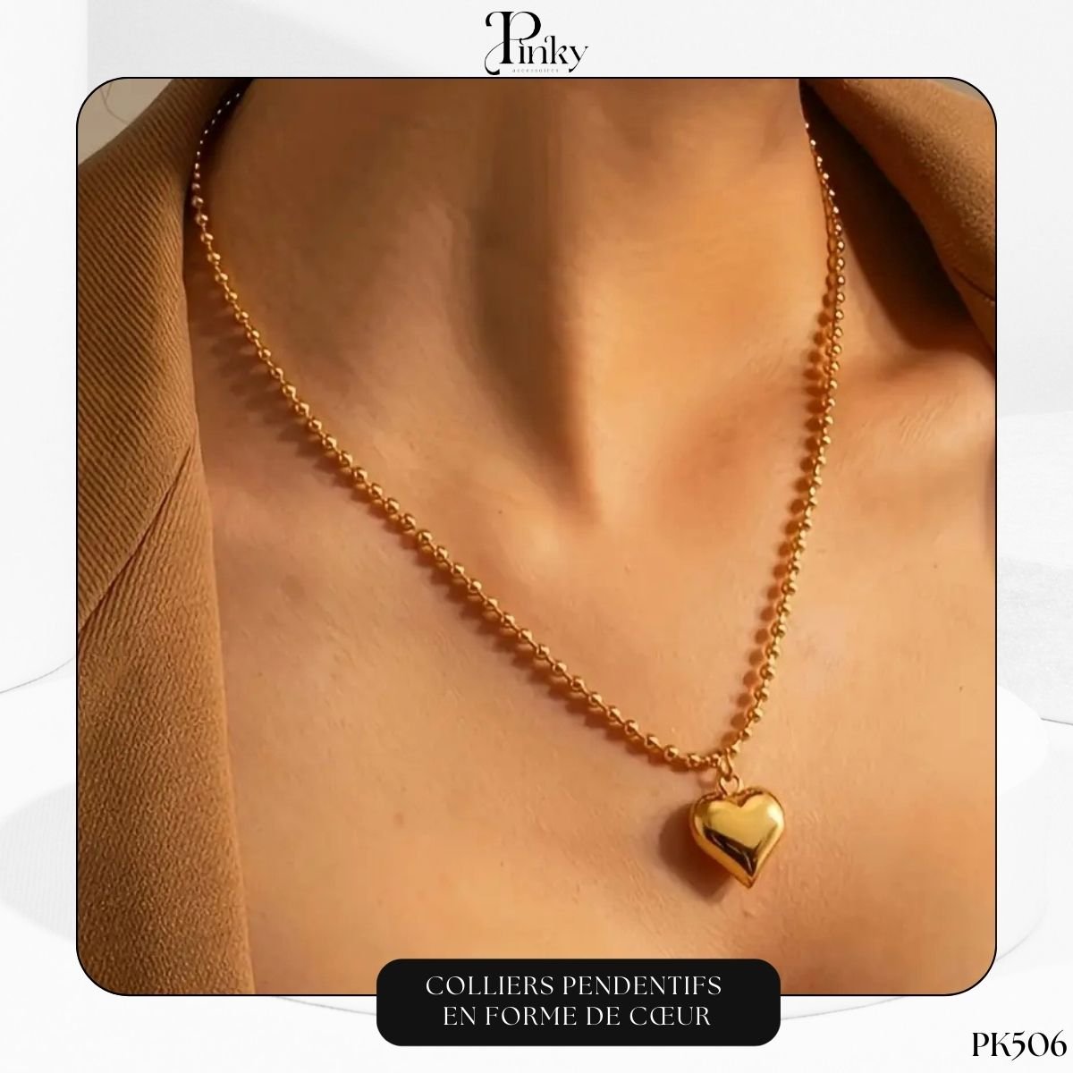 Le collier pendentif cœur PK506 est bien plus qu’un bijou : il reflète un message d’affection et de raffinement. Que ce soit pour compléter votre collection de bijoux ou pour surprendre un être cher, ce collier est le choix idéal.