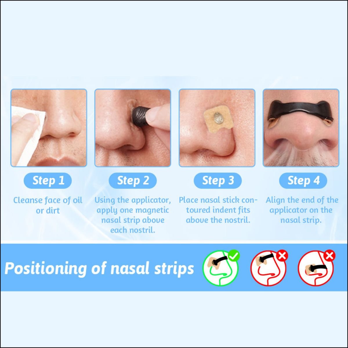 Bandes nasales magnétiques: améliorez votre respiration, réduisez les ronflements et profitez d’un sommeil réparateur en toute simplicité.