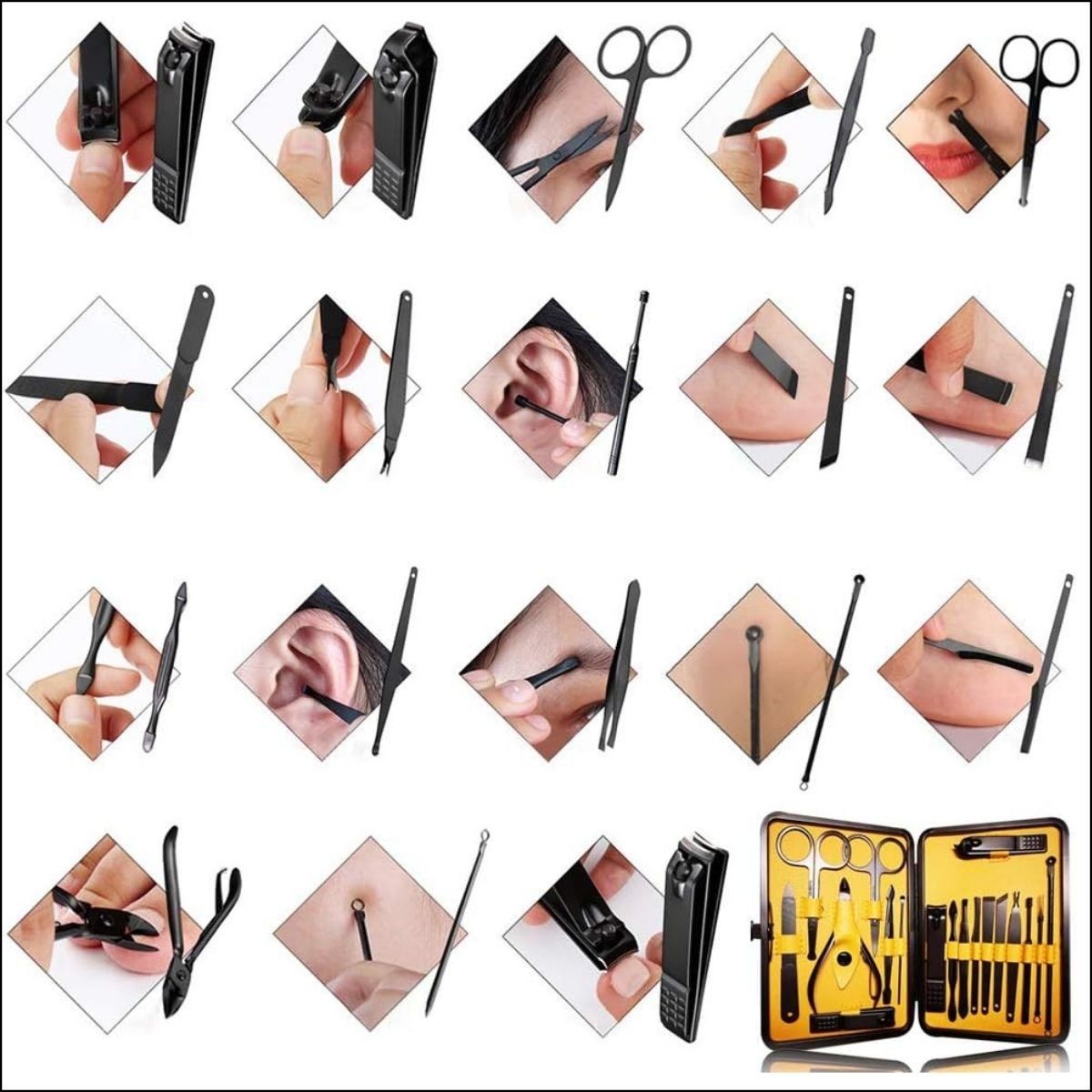 Prenez soin de vos ongles avec style grâce à ce kit de manucure et pédicure 19 pièces au design noir mat sophistiqué. C’est l’outil parfait pour une hygiène irréprochable et une finition professionnelle, que ce soit au quotidien ou en voyage.
