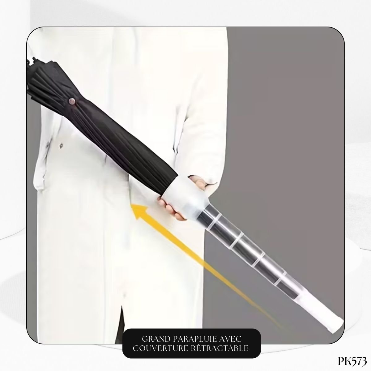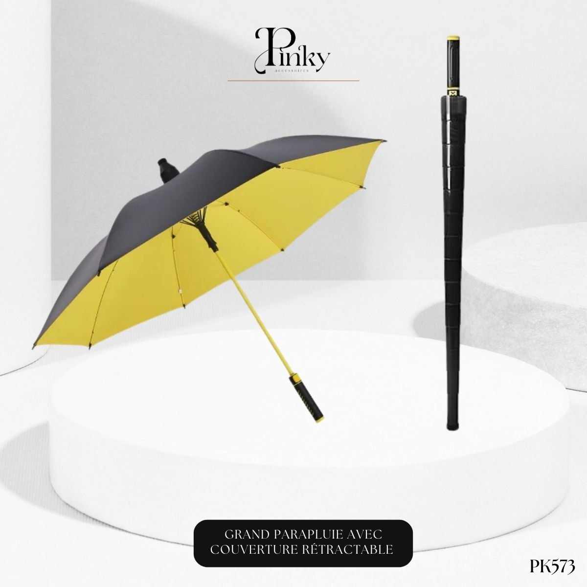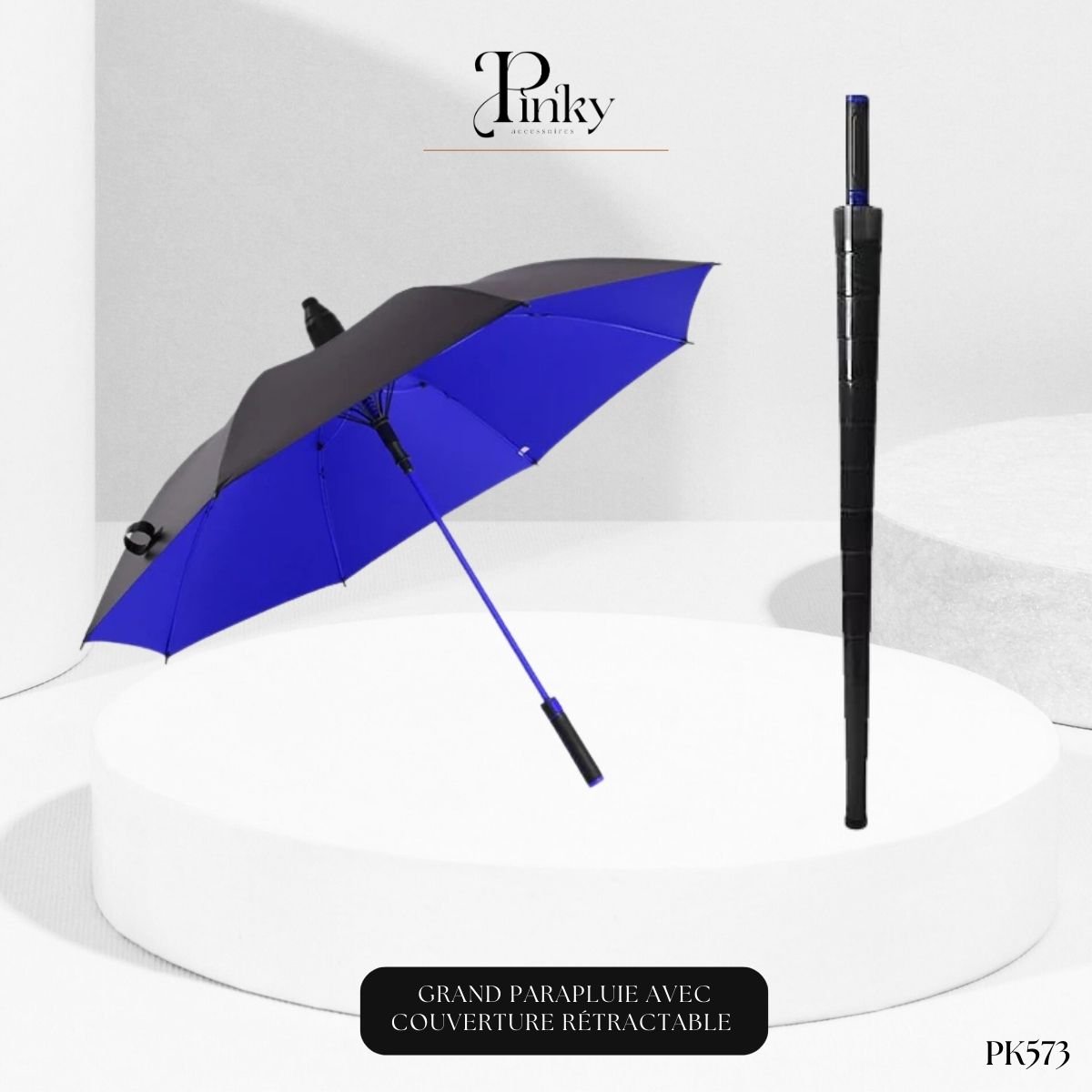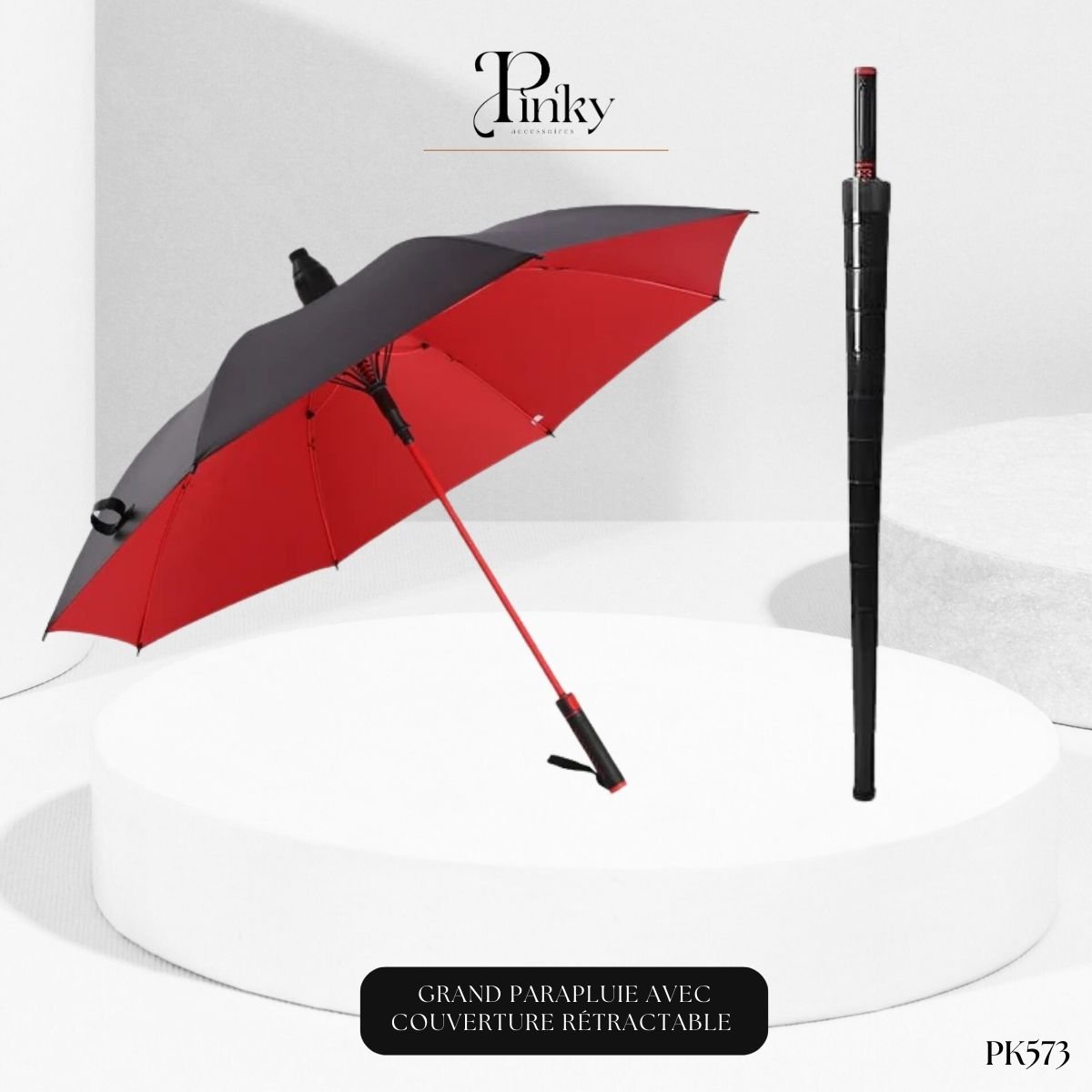 Choisissez le Parapluie PK573 pour combiner taille, robustesse et une solution de rangement anti-goutte révolutionnaire.