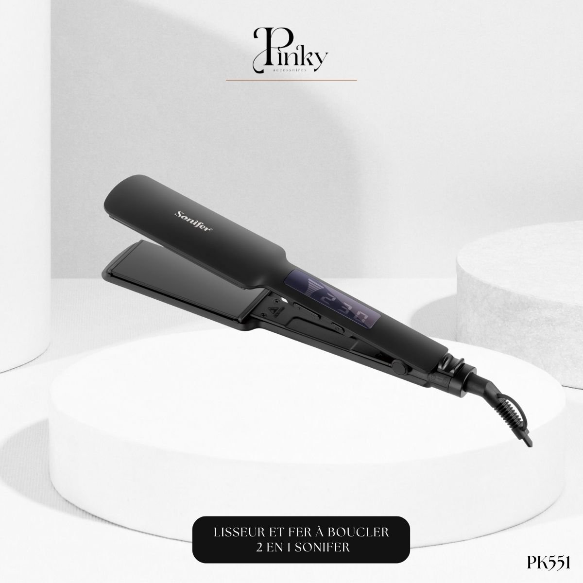 Achetez le Lisseur 2 en 1 Sonifer SF-9821 (65W). Écran LED, 230°C. Lissage rapide ou boucles parfaites. Un seul outil pour tous vos styles.