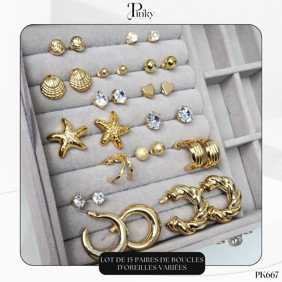 Ne manquez jamais d’inspiration avec ce lot de 15 paires de boucles d’oreilles soigneusement sélectionnées. Que vous recherchiez une touche de brillance pour le bureau ou un accessoire audacieux pour une soirée, cette collection polyvalente répond à toutes vos envies. C’est l’ensemble idéal pour celles qui aiment multiplier les looks sans compromis.