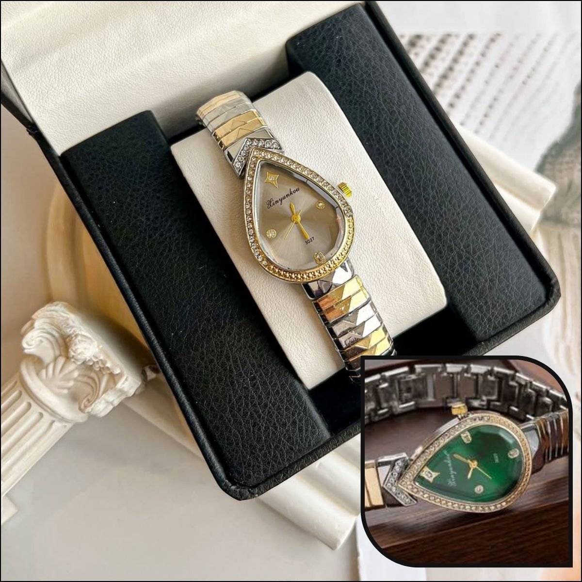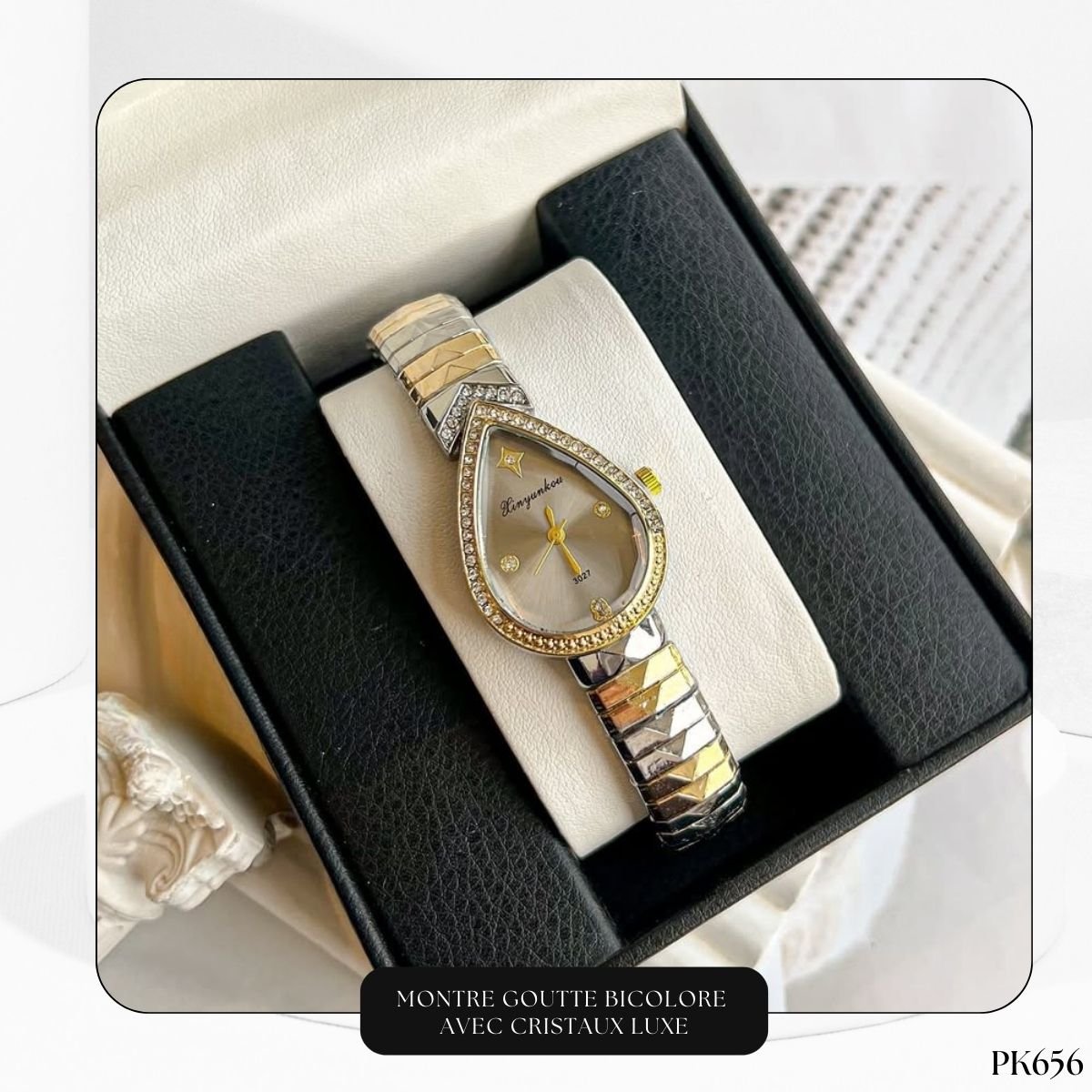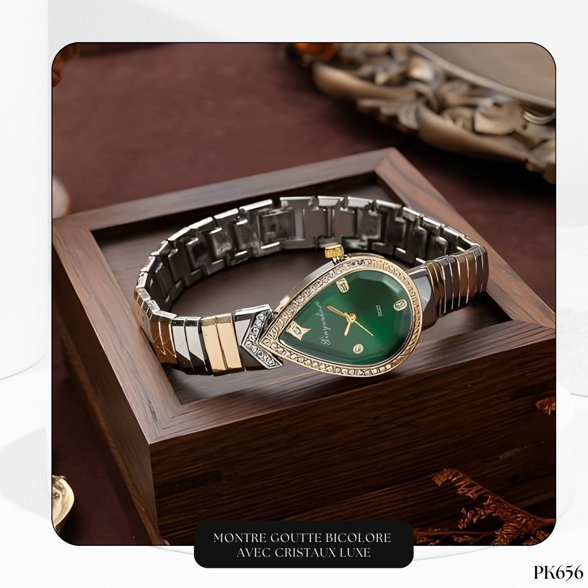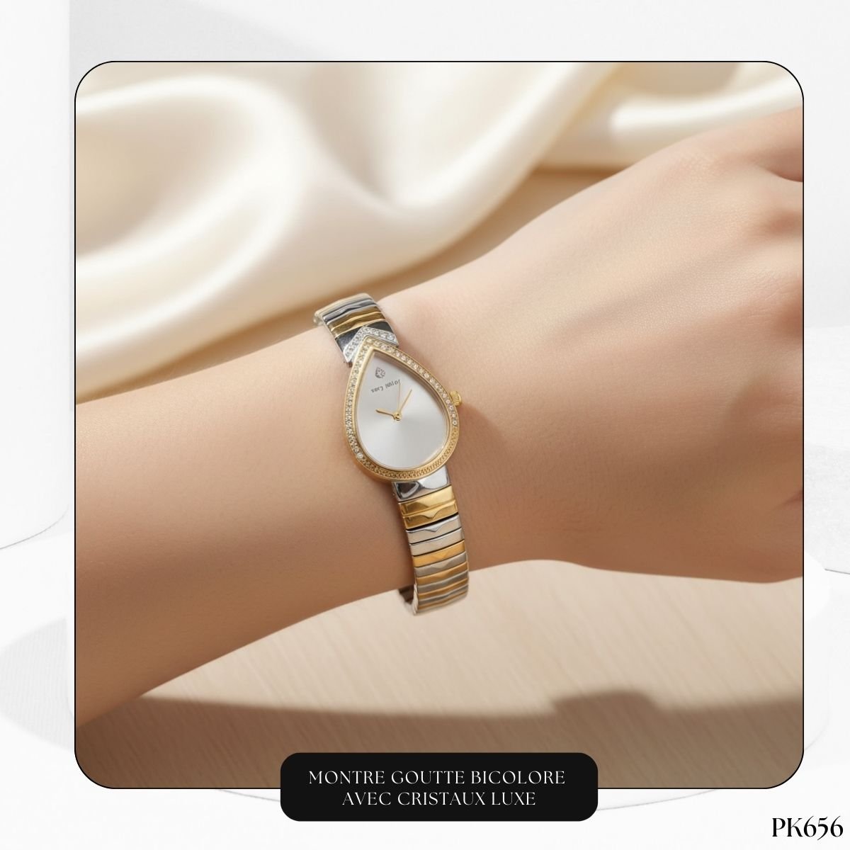 Laissez-vous séduire par l’élégance intemporelle de cette montre pour femme en forme de goutte (ou larme). Ce design distinctif, à la fois fluide et sophistiqué, est une véritable pièce maîtresse qui attire tous les regards. Sa forme organique apporte une douceur féminine irrésistible, parfaite pour celles qui recherchent un bijou horloger hors du commun.