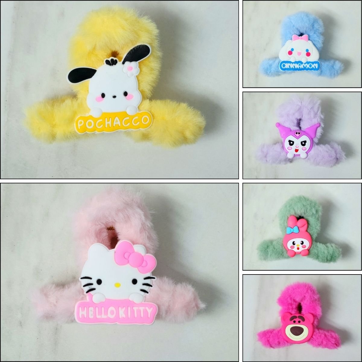 Pourquoi choisir quand on peut tous les avoir ? Profitez de notre Pack de 6 Pinces à Cheveux en Peluche pour varier les plaisirs selon votre humeur ou votre tenue du jour. Cet ensemble regroupe les personnages les plus emblématiques de l’univers Sanrio dans une version « Furry » ultra-tendance.