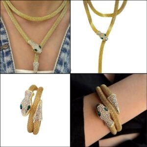 Parure Serpent Majestueuse : Collier & Bracelet Ajustable un ensemble captivant offre une élégance audacieuse. Il est parfait pour la femme moderne.
