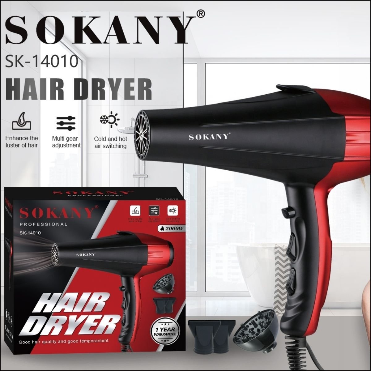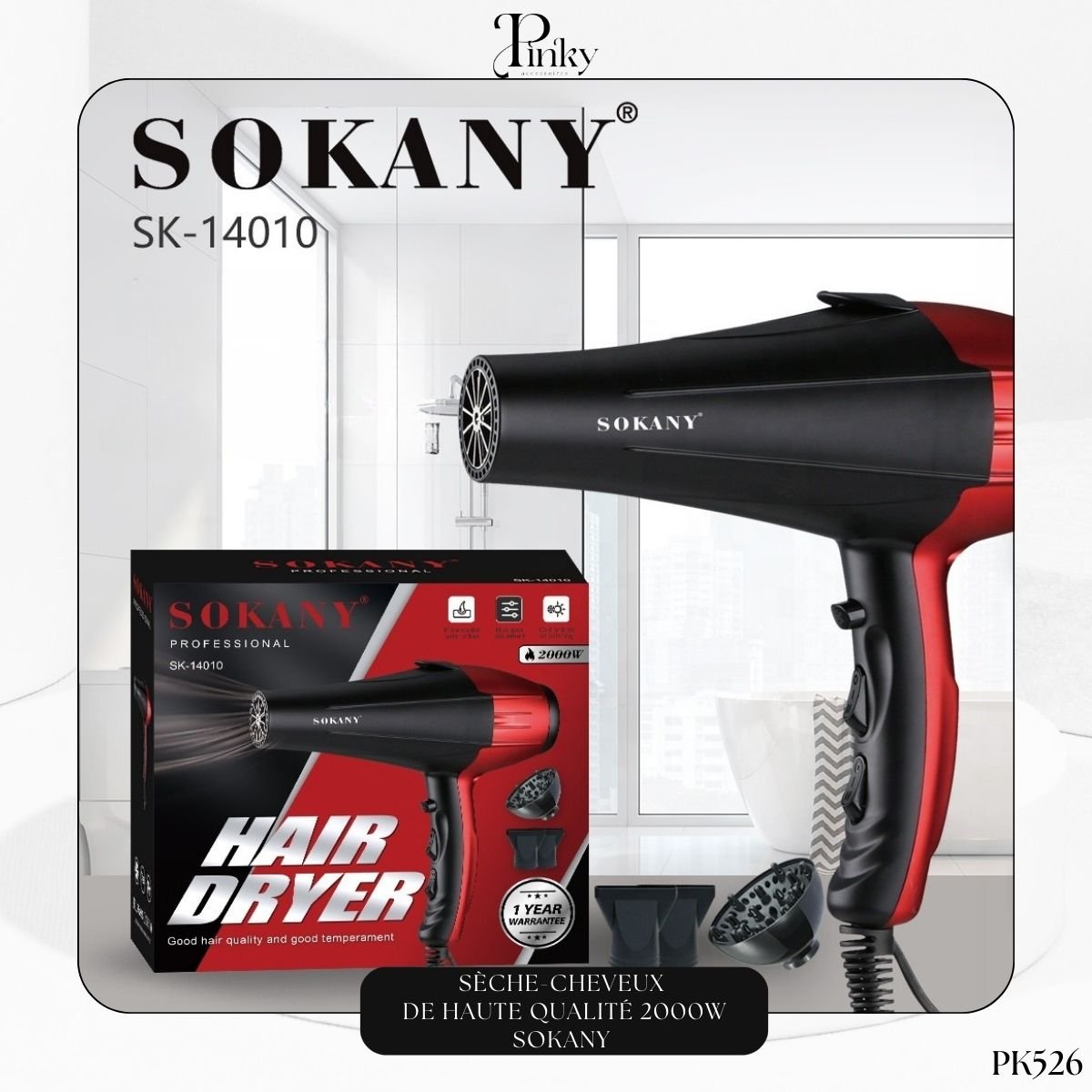 Sèche-Cheveux Sokany 2000W PK526 – Performance et Précision pour un Séchage Rapide